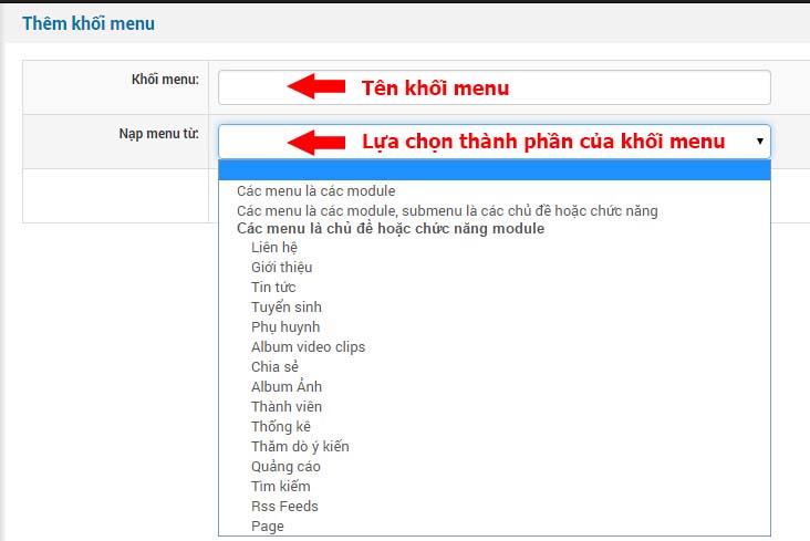 Để thực hiện các thao tác module menu đầu tiên người quản trị cần